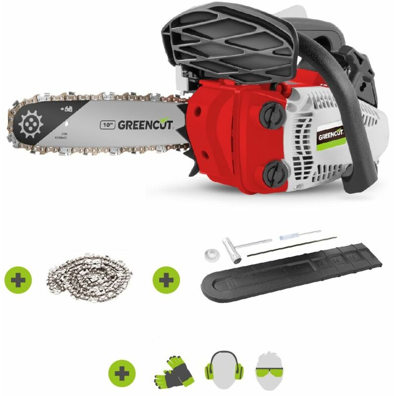 Greencut - Motosega a benzina, motore a scoppio 2 tempi 24.5cc, 1.4hp, lama da 10', lunghezza di taglio 25.4cm, per potatura, manubrio e imbracatura