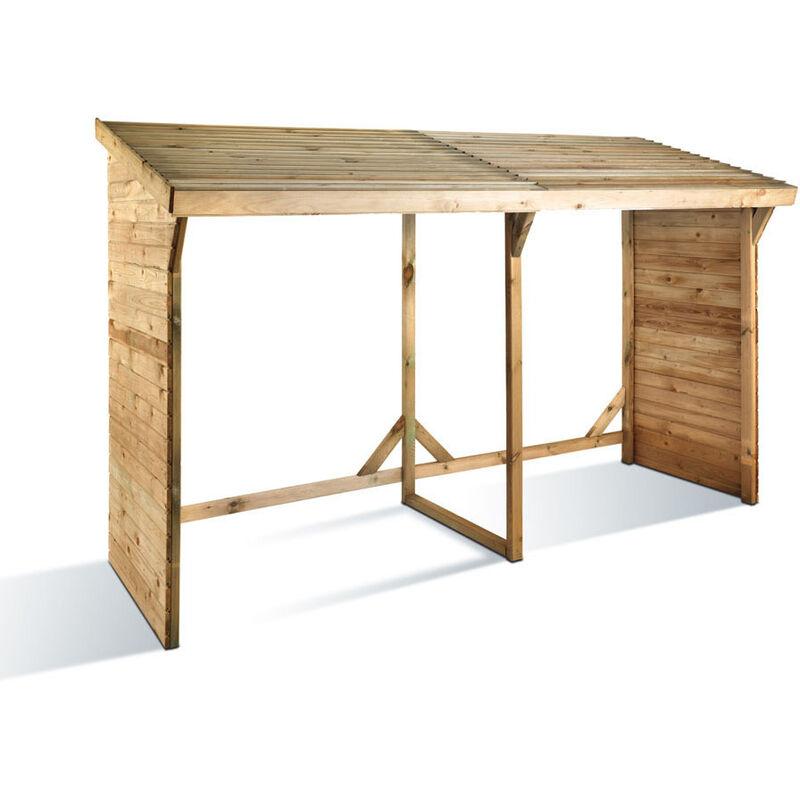 Bellissimo Capanno per la legna - 5 steri - 2,80 x 90/1,10 x 155/1,85 m - Pino silvestre trattato in autoclave classe III. Proteggete la legna e sfruttatela al meglio per il vostro riscaldamento. Descrizione : Legnaia doppia in pino che permette di asciugare 5 m3 di legna (5 steri). Dimensioni totali : L.280 x l.110 x h185 cm. Dimensioni interne : L.260 x l.86 x h.176 cm. Espessore delle assi : 16 mm. Trattamento : Legno trattato in autoclave classe 3. Quantità di steri : 5 steri. Consegna : 4 giorni lavorativi. Peso : 109 kg. Imballaggio : 1 collo: - 1,9 x 1,2 x 1,34 m, 109 kg. Materiale : Legno. Altezza : 1.85m. Superficie m² : 3.08 m². Consegna in strada (non si effettuano consegne al piano)....Per saperne di più