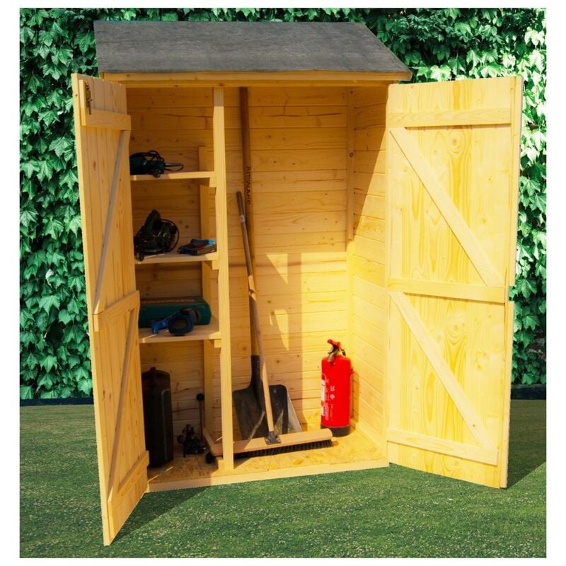 Armadio in legno ripostiglio porta attrezzi con 3 ripiani interni sul un lato e spazio utile accanto per oggetti alti, misura ingombro 120x65x206 cm. La sporgenza del tetto è 2.5 cm per lato. Casetta realizzata in legno con tetto con spiovenza anteriore e porta doppia anta montata su cerniere in metallo. Studiato per gli tutti i tuoi oggetti e accessori che in casa non sai mai dove mettere, adatto per uso esterno in giardino e terrazzo. Le dimensioni ed il peso ridotto permettono un montaggio facile e sicuro anche su terrazze o balconi. Manutenzione: trattare con impregnante, sia all’interno che all’esterno, subito dopo il montaggio. Suggerimenti per la posa in opera: installare preferibilmente su una piattaforma in cemento, operazione da effettuare prima della posa in opera ed in tempo utile per un perfetto consolidamento prima del montaggio. In alternativa è possibile posizionarlo su una pavimentazione. Caratteristiche Tecniche : Dimensioni ingombro (LxPxH): 125x65x206 cm Dimensioni...Per saperne di più