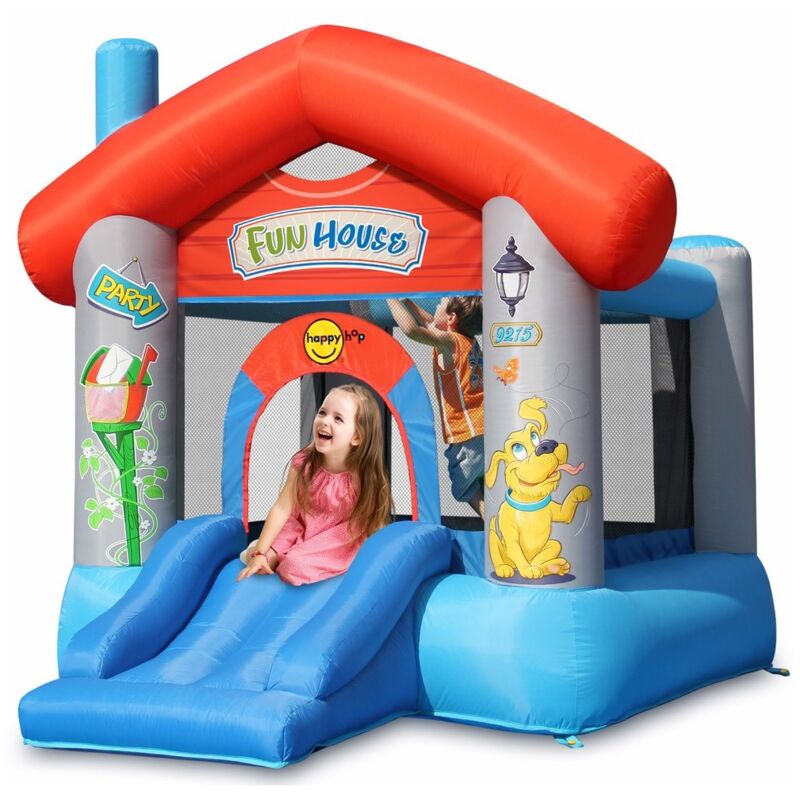 Castello gonfiabile Fun House con tappeto per saltare, canestro e scivolo, misura 280x230x215 cm Garantisce massimo divertimento ad un prezzo più economico. Ottimo da regalare ai tuoi bambini per farli divertire in giardino. Adatto anche per luoghi al coperto, date le sue contenute dimensioni. Fantastico gonfiabile per feste di compleanno e intrattenimento all'aperto! I castelli gonfiabili sviluppati per garantire un infinito divertimento per tutti. I gonfiabili attirano sempre più genitori, offrono un facile sistema di gioco velocissimo da montare che permetterà ampio sfogo a tutti. Ogni modello è un mondo a sé con varie possibilità di svago, scivoli, saltarelli, canestri, palline, spruzzi... Caratteristiche: Età utilizzo: da 3 anni Altezza massima bambino: 150 cm Peso massimo supportato: 90 kg Dimensioni aperto (LxPxH): 280x230x215 cm Dimensioni scatola (LxPxH): 38x38x53 cm Peso: 12.7 Kg Incluso nella confezione: Pompa elettrica (gonfiaggio continuo) 1.5 E Sacca da trasporto...Per saperne di più