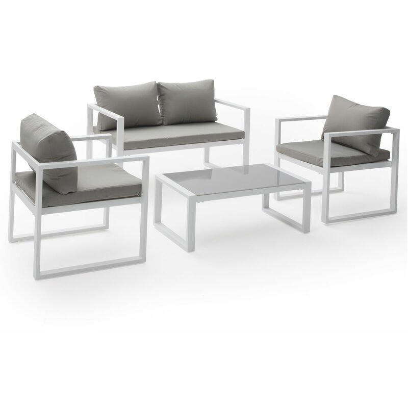 Happy Garden - Set di mobili da giardino ibiza in tessuto grigio 4 posti - alluminio bianco