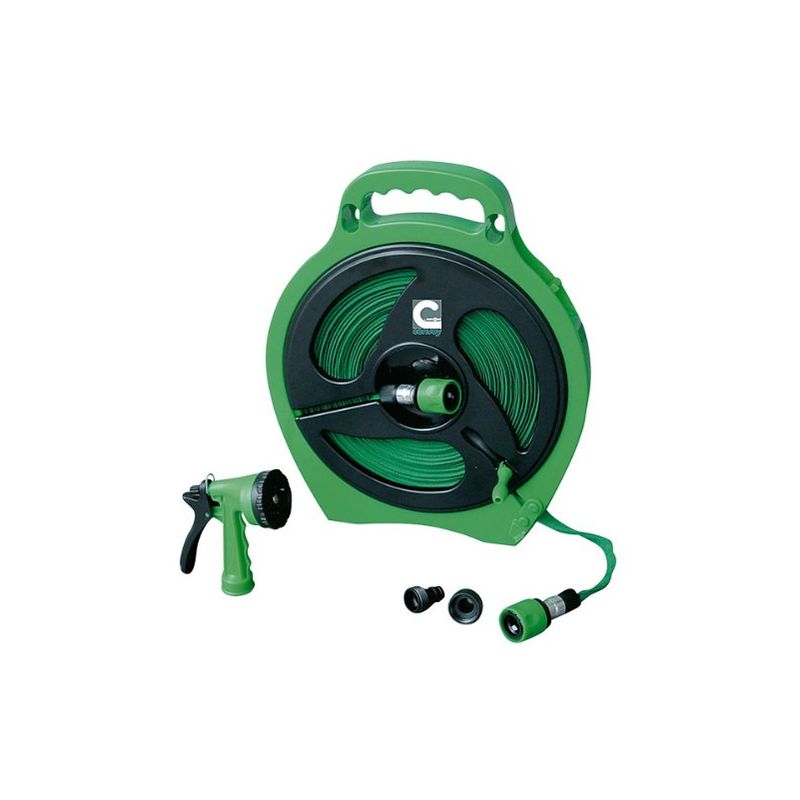 15 m 40x34 cm Avvolgitubo con tubo piatto dotato di guaina in tessuto antismagliatura. Bobina ad avvolgimento facile con torcitore. Completo di raccordi e lancia per doccia a 4 posizioni....Per saperne di più