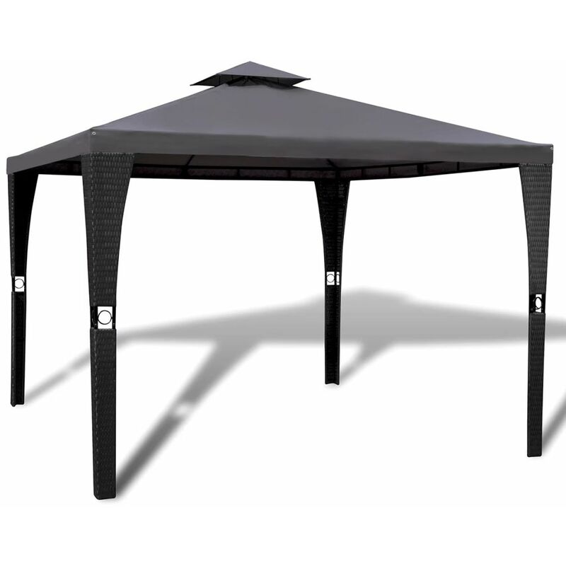 Descrizione: Questo gazebo è ideale per qualsiasi evento all'aperto, come spettacoli, nozze, feste, barbecue, festival ed altro. Lo puoi installare anche nel cortile come una grande protezione contro il sole per tutta la famiglia e ospiti. Il telaio è in acciaio rivestito a polvere, resistente alla ruggine e leggero. La vimine intrecciata aggiunge al gazebo un aspetto elegante e attraente. Il tetto è in poliestere resistente agli strappi ed ai raggi UV, resistente all'acqua e molto resistente. La costruzione doppia del tetto permette la circolazione dell'aria durante una giornata calda. Il gazebo è molto durevole. Il montaggio è semplice. Il gazebo è molto durevole. Il montaggio è semplice. ll gazebo ha dei fori ai piedi e può essere facilmente fissato al suolo con corde o chiodi (non compresi nella fornitura). Preghiamo di notare che si consiglia di trattare il tetto con uno spray impermeabilizzante se il gazebo è sottoposto a forti piogge. Specificazioni: Colore: Tetto grigio scuro...Per saperne di più