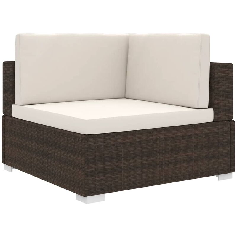 Hommoo Poltrona Modulare ad Angolo 1 pz con Cuscini Polyrattan Marrone VD27609