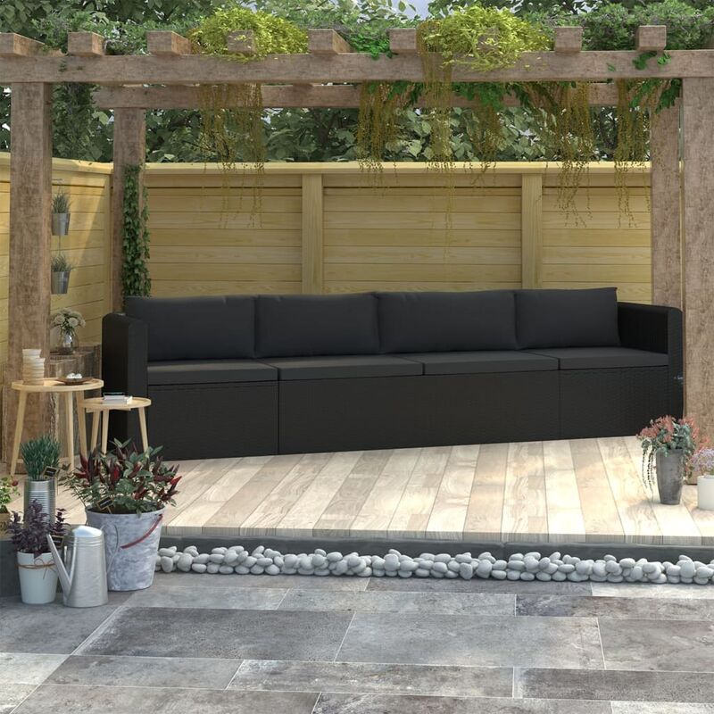 Hommoo Set Divani da Giardino 4 pz con Cuscini in Polyrattan Nero VD45598