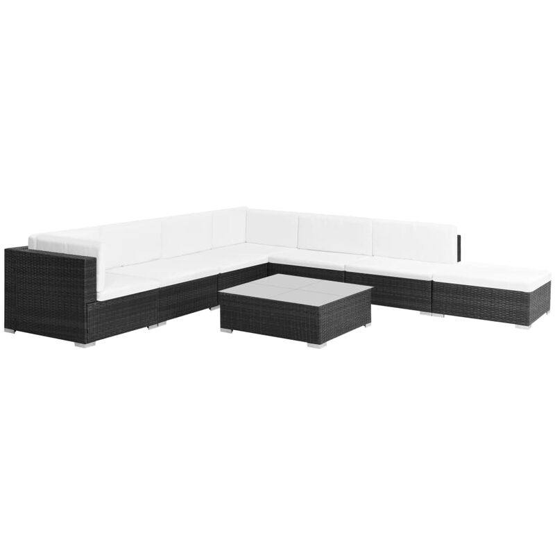 Hommoo Set Divani da Giardino 8 pz con Cuscini in Polyrattan Nero VD26365