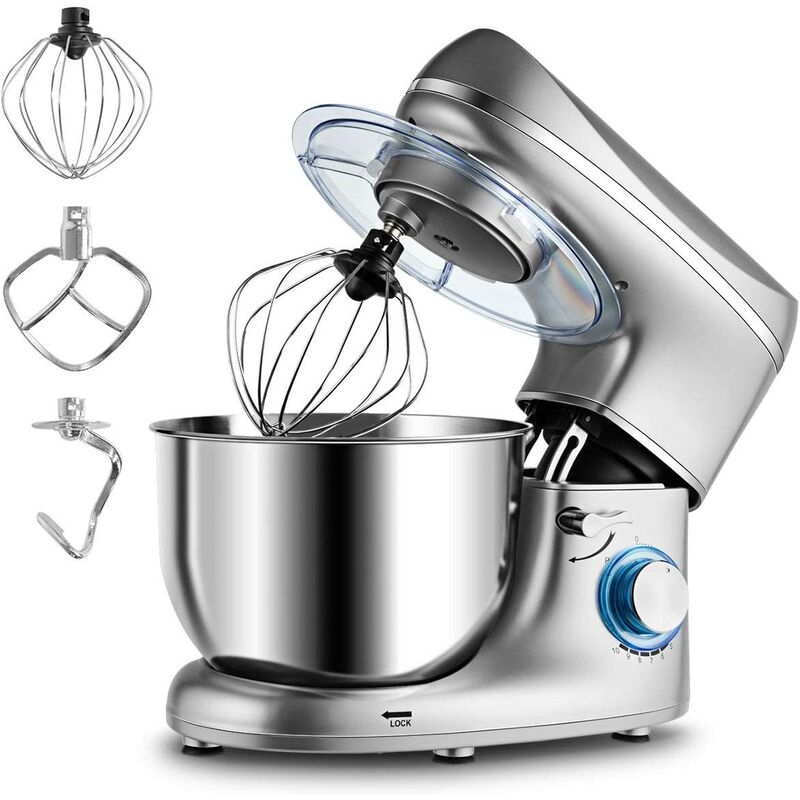 Impastatrice Planetaria con 3 Fruste,1300 W,10 Velocit�� Variabile,5,5L, Acciaio Inossidabile, Resistente e Multifunzionale, con Ciotola e Coperchio,