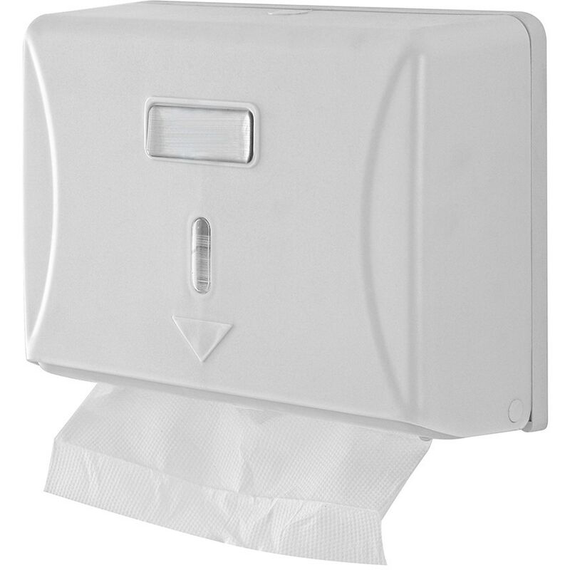 Distributore salviette - per carta asciugamani piegata Z-V,capienza 200 salviette con erogazione singola Il distributore per salviette è un sistema moderno ed efficiente,ideale per le aree bagno ad affluenza medio-bassa. E' compatibile per ospitare salviette nel formato a zig-zag (piega a Z) o in pila (piega a V),facile da ricaricare mediante apertura con chiavetta ,per una manutenzione semplice e veloce. Il dispenser per carta portasciugamani ha un sistema di erogazione singola ,per un consumo ridotto di salviette ed una maggiore igiene,in quanto consente di toccare con mano una ed una sola carta asciugamani. E' dotato chiusura ermetica,ideale per garantire la massima pulizia della carta interna. Sul lato frontale è possibile monitorare lo stato di riempimento mediante l'appostia finestra di controllo consumo,per un rimpiazzo semplice e veloce. Il distributore per salviette asciugamani è dotato di installazione pre-forata a parete ed include le viti per il fissaggio. Distributore...Per saperne di più