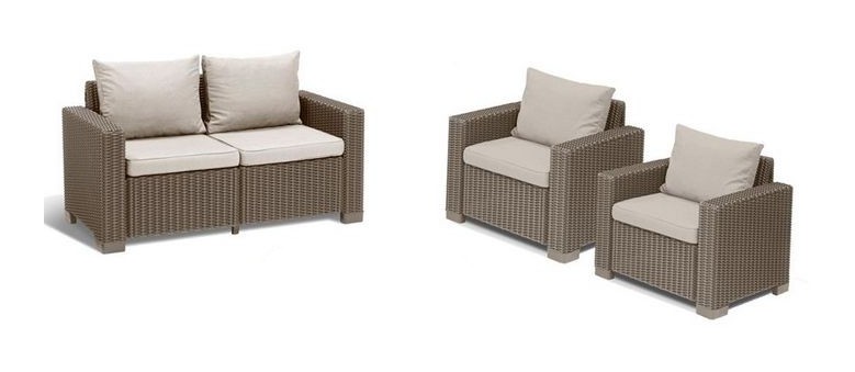 Keter Set Lounge CALIFORNIA Cappuccino Divano + 2 Poltrone con Braccioli