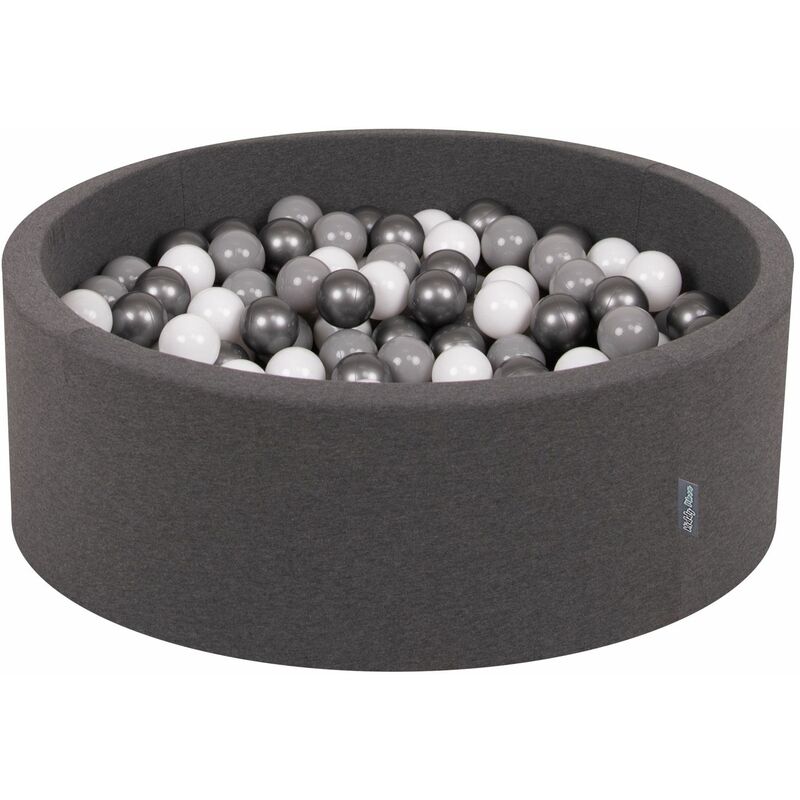 KiddyMoon 90X30cm/300 Palline ∅ 7CM Piscina Di Palline Colorate Per Bambini Tondo Fabbricato In EU, Grigio Sc:Bianco/Grigio/Argento - grigio