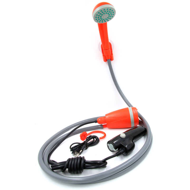 Caratteristiche: Portable doccia esterna make si può godere di una comoda doccia, anche fuori di casa. Trasforma lavandino o secchio d'acqua nel flusso doccia istante, dolce e più conveniente. Disegno ricaricabile, 2200mAh grande capacità, caricatore USB, non c'è bisogno di preoccuparsi per le batterie usura. Con set gancio, si può appendere tranquillamente in testa, labour-saving. Piccole dimensioni e peso leggero, facile da trasportare. Applicazione larga, ideale per le auto di lavaggio, i viaggi, escursioni, campeggi, ragazzo da bagno, pulizia dell'animale domestico e così via. Specifica: Materiale: ABS e gomma Colore arancione Uscita: 3.5L / min Tensione: 3.7V Potenza: 25W Batteria: Batteria al litio 2200mAh Tubo: diametro 1,5 centimetri, lunghezza 2m Lunghezza del cavo: 2m Temperatura dell'acqua: non più di 45...Per saperne di più