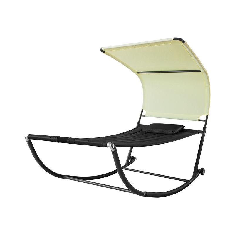 Lettino da Giardino con Ruote Poltrona a Dondolo Sdraio Giardino Letto Singolo Max. 200 kg L97*P207 cm Nero OGS44-SCH - Sobuy