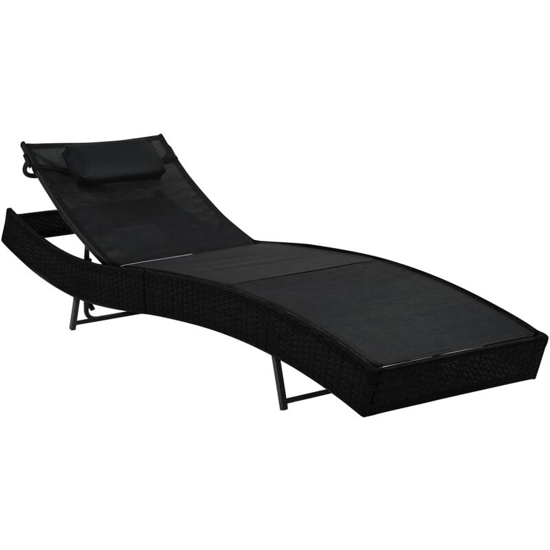 Lettino Prendisole con Cuscino in Polyrattan Nero VD26470 - Hommoo