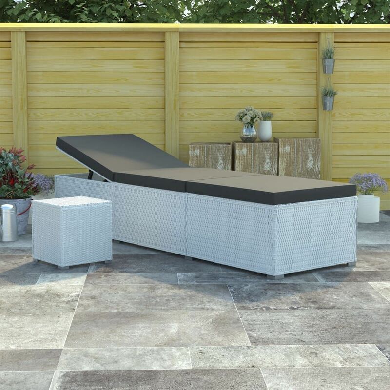 Lettino Prendisole Cuscino e Tavolino da Tè Polyrattan Bianco - Bianco - Vidaxl