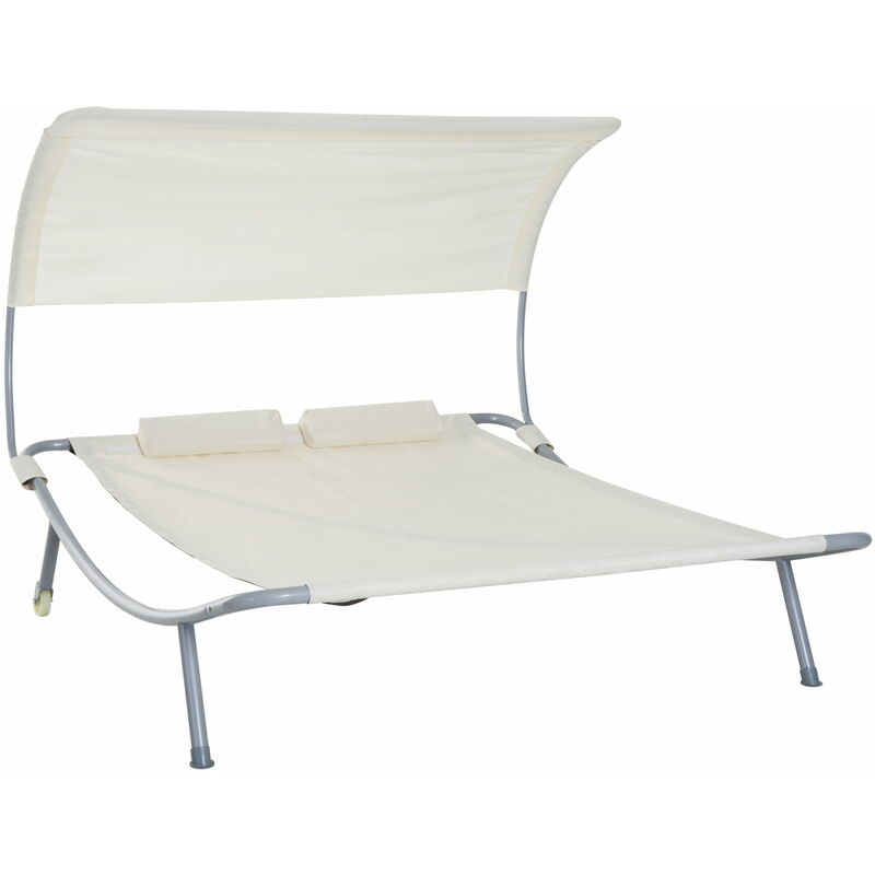 Lettino Prendisole Matrimoniale In Acciaio Con Tettuccio Regolabile Crema Miozzi