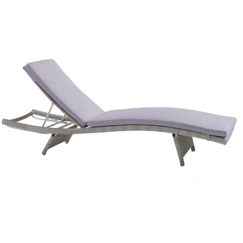 Lettino Sdraio Da Giardino In Wicker Grigio Con Cuscino Grigio Intreccio In Rattan Sintetico Da Esterno - MILANI HOME