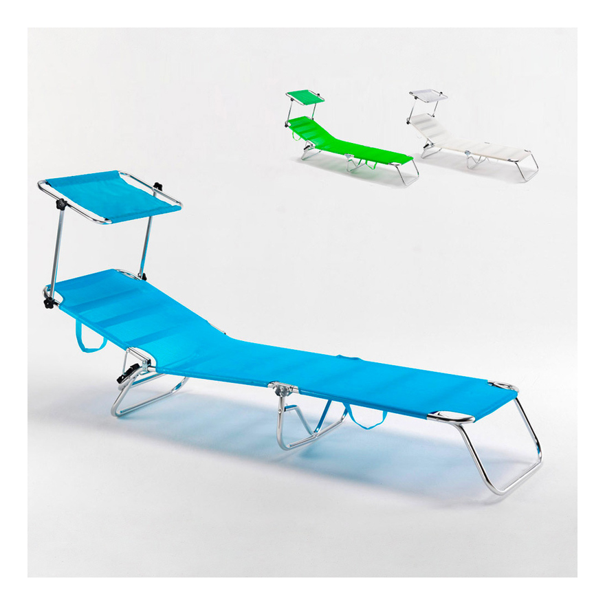 Lettino prendisole con tettuccio parasole per la protezione dai raggi uv, struttura rinforzata e maniglie per il trasporto confortevole ed ergonomico Cancun è una brandina pieghevole da mare con maniglie per il trasporto e rinforzi elastici leggerissima da trasportare in spiaggia! Caratteristiche tecniche lettino spiaggia mare brandina pieghevole in alluminio piscina Cancun: Tettuccio parasole con viti autobloccanti (non cade in testa durante l'uso) Struttura in alluminio anodizzato Ripiegabile in 3 parti Schienale reclinabile in 4 posizioni, ultima completamente orizzontale Diametro della struttura 22mm, spessore 1,2 mm Tessuto Textilene lavabile Cinture di rinforzo elastiche Pratiche maniglie per il trasporto in spiaggia Misure lettino aperto 188 x 55 x 28cm (lunghezza, larghezza, altezza da terra) Misure lettino chiuso 74 x 55 x 17cm (lunghezza, larghezza, spessore) Peso lettino 4.4 Kg. Note: Viteria in acciaio e plastica di qualità...Per saperne di più