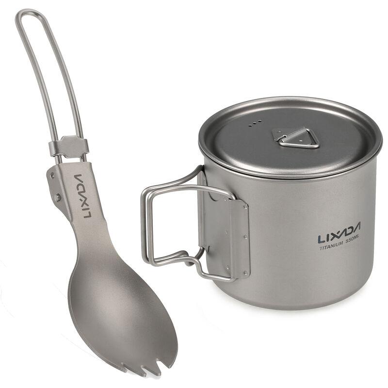 Lixada 550ml esterno bicchiere pieghevole portatile di titanio titanio pieghevole forchetta cucchiaio +