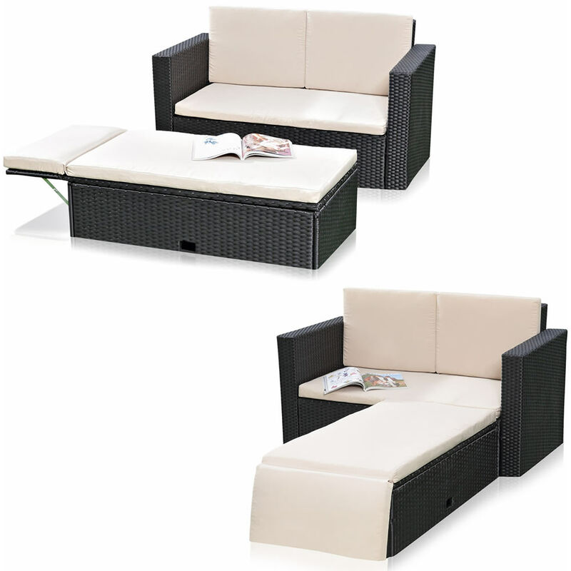 Melko divano da giardino con poggiapiedi Polyrattan set da giardino d'inverno nero ??