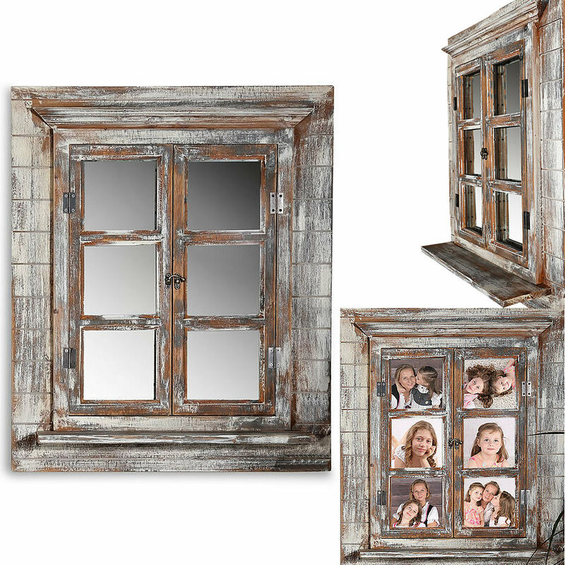 Melko - Specchio a parete con persiane 64x54cm Shabby Chic finestra a specchio con mensola, portafinestra può essere utilizzata come cornice 13x13cm