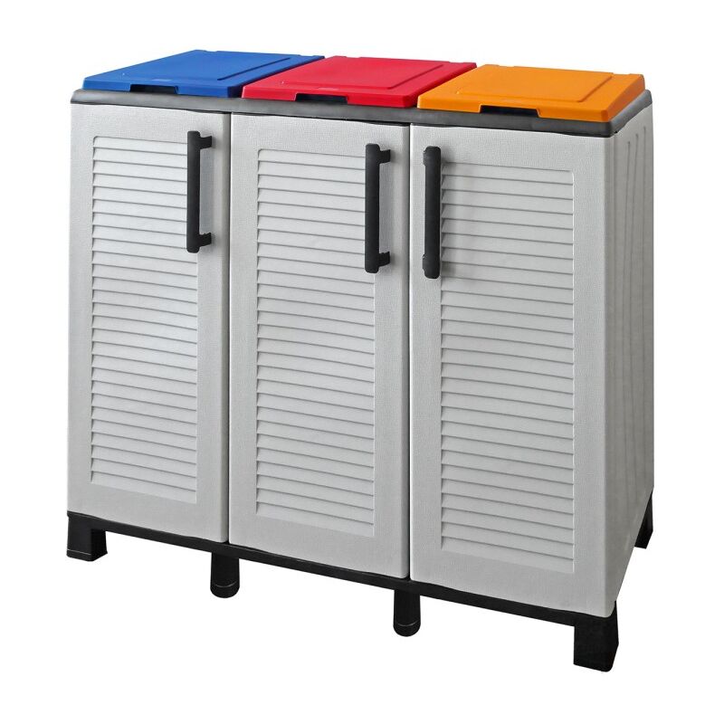 Elegante e funzionale armadio in polipropilene a 3 ante misure 102x37x90 cm con coperchio a chiudere dotato di cerniere in metallo. L'apertura frontale consente una rimozione facile e veloce dei sacchi, i piedini sottostanti tengono il mobile rialzato da terra. Mobile che consente di posizionare 3 sacchi grandi per la raccolta dei rifiuti. Studiato per poter essere usato in esterno, ottimo da avere in giardino per la raccolta dell'immondizia realizzato in polipropilene ultra resistente sia alle basse che alle alte temperature. Con le ante chiuse è un classico armadio da esterno, si adatta ad ogni tipo di arredo. Estremamente versatile per ogni tipo di rifiuto perché prevede l'utilizzo del sacco raccogli immondizia che rimane ben fissato sotto il coperchio del mobile. Armadio prodotto con metodo produttivo ad iniezione. non assorbe odori né umidità. Caratteristiche Tecniche: Dimensioni (LxPxH): 102x37x90 cm3 maniglie nere verticali sugli sportelli Dotato di coperchio con anello reggi...Per saperne di più
