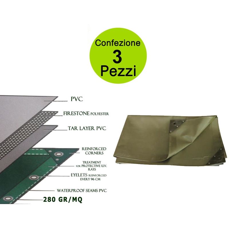 Multipack pezzi 3 telo occhiellato pesante pvc 280 gr/mq dimensioni metri 4x6 - STORE INGROSS