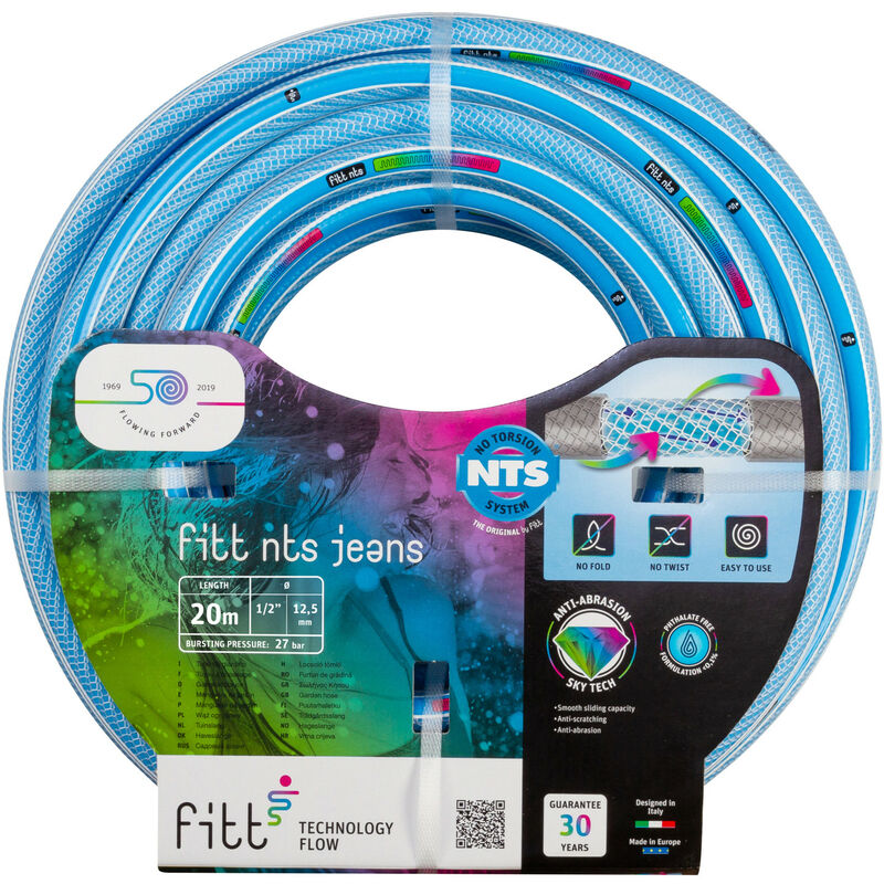 Nts jeans 1/2' (12,5 mm) 20 m - Tubo Azzurro per Irrigazione da Giardino, Robusto e Malleabile, per Uso Intensivo - Fitt