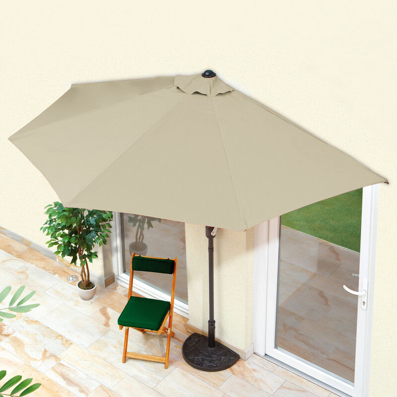 In breve Salvaspazio, ideale in terrazzi o balconi In robusto acciaio verniciato a polvere Telo in poliestere, impermeabile Apertura e chiusura con manovella integrata Con base in cemento da 9,5 kg Descrizione Pensato per balconi e terrazz i, un ombrellone da balcone a forma di mezzaluna , così da poter essere montato a ridosso della parete di casa, senza rubare spazio. Con robusto tubo in acciaio verniciato a polvere e telo impermeabile in poliestere, si apre e chiude facilmente grazie alla manovella integrata. Per colazioni o pranzi all'aria aperta , anche in piccoli spazi, riparandosi dai raggi diretti del sole! La base in cemento integrata ricorda la ghisa, e assicura la massima stabilità, con i suoi 9,5 kg di peso. L' ombrellone da balcone misura 270 x 240 x 140 cm; la base 48 x 33 x 30 cm....Per saperne di più