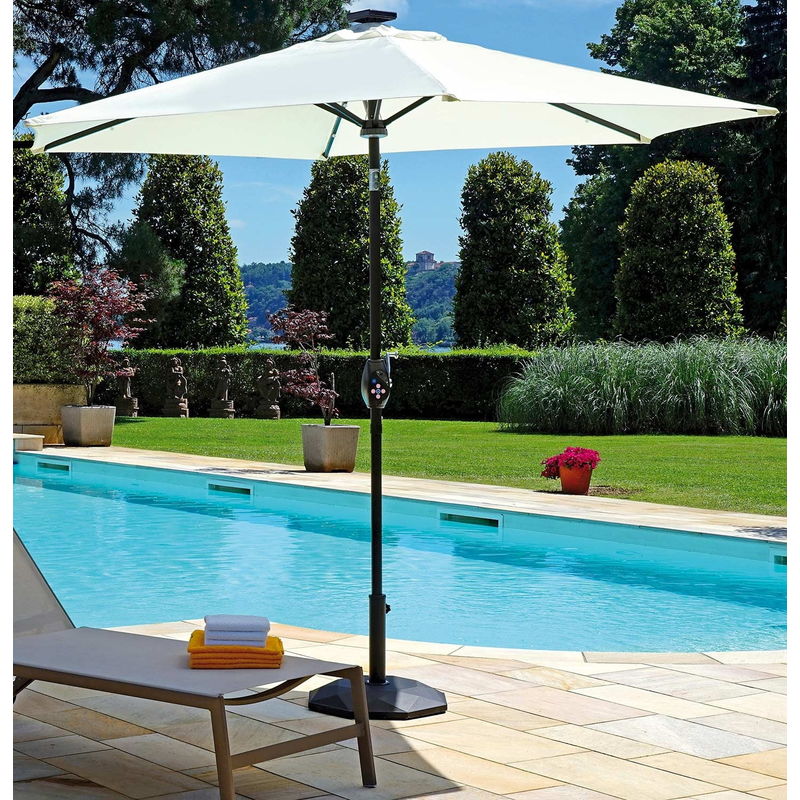Ombrellone Ombrellone da Giardino in Alluminio Rotondo Ø2,70m con Luci e Bluetooth Vorghini Trendy Antracite e Ecrù a Energia Solare Ombrellone rotondo Ø 2,70 m. - Con luce a led sulle bacchette e luce centrale - Connessione Bluetooth. - Con cassa integrata alimentata a pannello solare - 6 bacchette da 14x20 mm. - Fusto in ferro Grigio Antracite Ø 38 mm. - Con snodo - Poliestere 180 gr. - Ecrù - Con antivento...Per saperne di più
