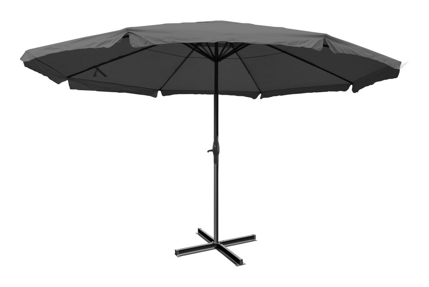 Ombrellone ideale per giardino e terrazza modello T45 Merano Pro con volante copertura in poliestere struttura in alluminio antiruggine colore ANTRACITE versione SENZA BASE Questo ombrellone rivestito in poliestere 250g/mq vi proteggerà dal sole e dai pericolosi raggi UV. Inoltre il rivestimento è idrorepellente per proteggere dalla pioggia. Le doppie cuciture e le stecche in alluminio rinforzato garantiscono più stabilità e una maggiore resistenza al vento. Esistono diverse possibilità per installare l'ombrellone, la base a croce può essere impiantata nel terreno o nel cemento. In alternativa, acquistando la versione con la nostra base riempibile fino a 64,5kg, otterrete una struttura ancora più stabile e robusta, in grado di resistere ancora meglio alle sollecitazioni degli elementi! Le versioni Merano Pro hanno la stecca centrale rinforzata, per garantire ancora più stabilità e robustezza. Inoltre il meccanismo di apertura e chiusura di queste versioni è stato migliorato,...Per saperne di più