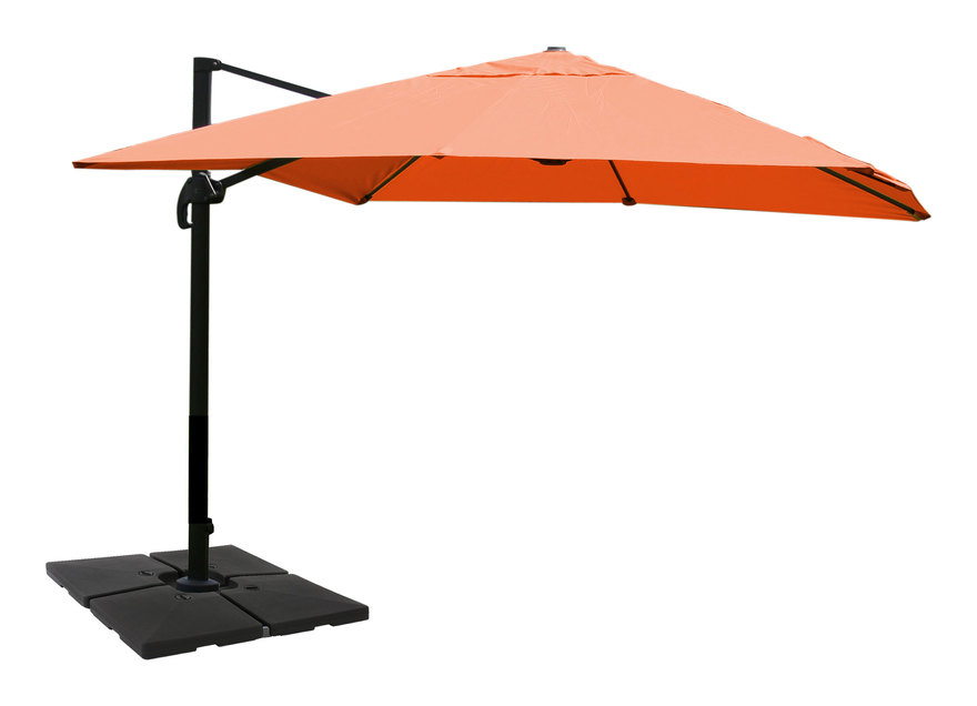 Ombrellone parasole modello HWC-A96 T126 100%poliestere struttura in alluminio inossidabile extra rinforzata colore ARANCIO versione GIREVOLE CON BASE Questo ombrellone rivestito in poliestere vi proteggerà dal sole e dai pericolosi raggi UV. L'apertura e la chiusura dell'ombrellone sono estremamente pratiche grazie alla manovella removibile. L'altezza/inclinazione dell'ombrellone è regolabile in 5 diversi livelli. La serie di ombrelloni HWC-A96 offre una vasta gamma di forme e colorazioni, inoltre ogni ombrellone viene proposto anche con diversi accessori come la piastra girevole a 360° e la base a riempimento. Ogni versione è ordinabile anche con la struttura in alluminio extra rinforzata. Esistono diverse possibilità per installare l'ombrellone, la base a croce può essere impiantata nel terreno o nel cemento (fori per chiodi presenti) oppure acquistando la versione con la nostra base, riempibile fino a 150kg, avrete una struttura ancora più stabile e robusta! In grado di resistere...Per saperne di più