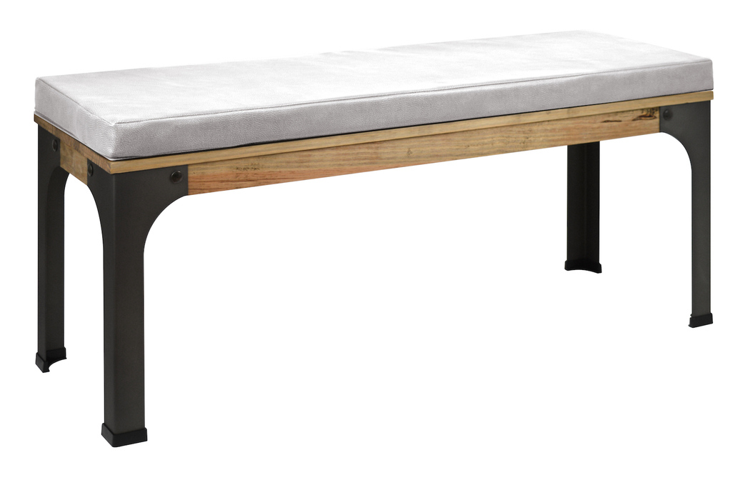 Panca à Sala da Pranzo o fondo letto in stile industriale vintage combinazione da legno e metallo. Cuscino in pelle sintetica colore bianco. Profondità: 40cm x Larghezza: 120cm x Altezza: 51cm Perfetto per creare un'atmosfera industriale qui è a la moda attualmente. Lo stile industriale vintage prende le sue caratteristiche da vecchie fabbriche o spazi industriali, a cui si uniscono pezzi solidi di legno massiccio con elementi metallici che rendono l'unione e allo steso tempo danno loro una straordinaria resistenza all'utilizzo. Piano in legno di pino massiccio rifinito con oli naturali, con elevata resistenza all'utilizzo e certificazione ecologica. Toccato molto agradabile a legno naturale. Piedini in metallo in 2mm. di spesore taglio laser. Finito con vernice a polvere secca, cotta ad alta temperatura....Per saperne di più