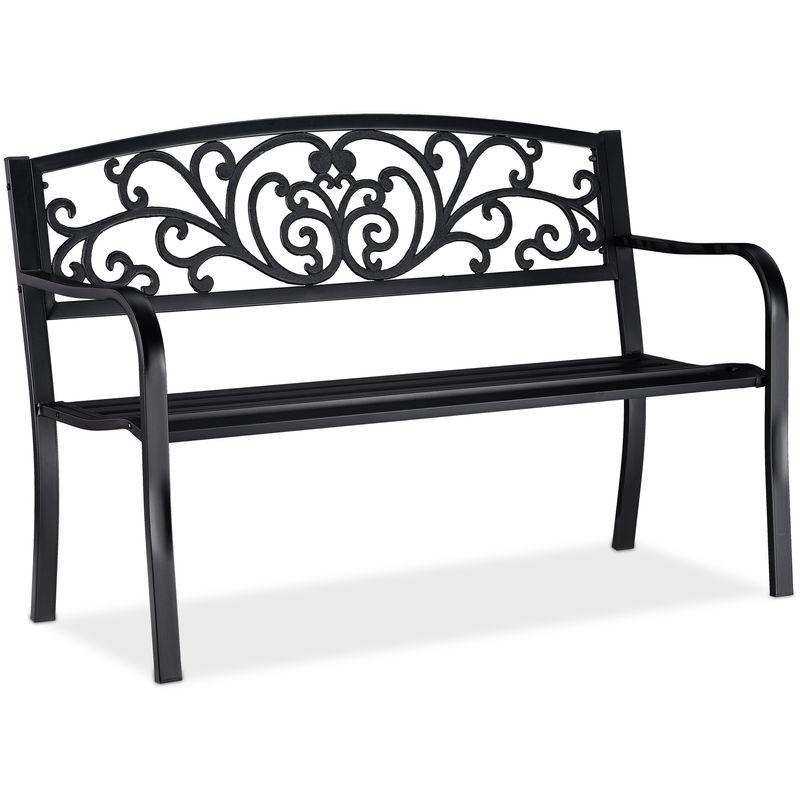 Panca da Giardino, a 2 Posti, con Decorazioni Vintage, per Balcone, HxLxP 86,5 x 127 x 60 cm, Nero - Relaxdays