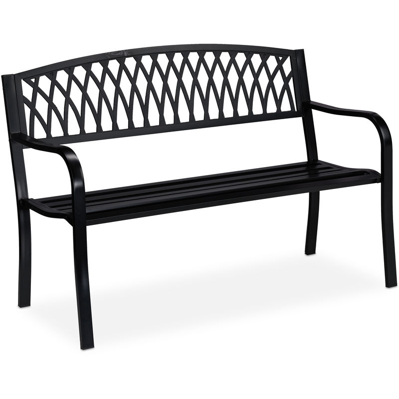 Panca da Giardino, Outdoor, a 2 Posti, Resistente alle Intemperie Rivestimento Antiruggine, 87x127x60 cm, Nero - RELAXDAYS