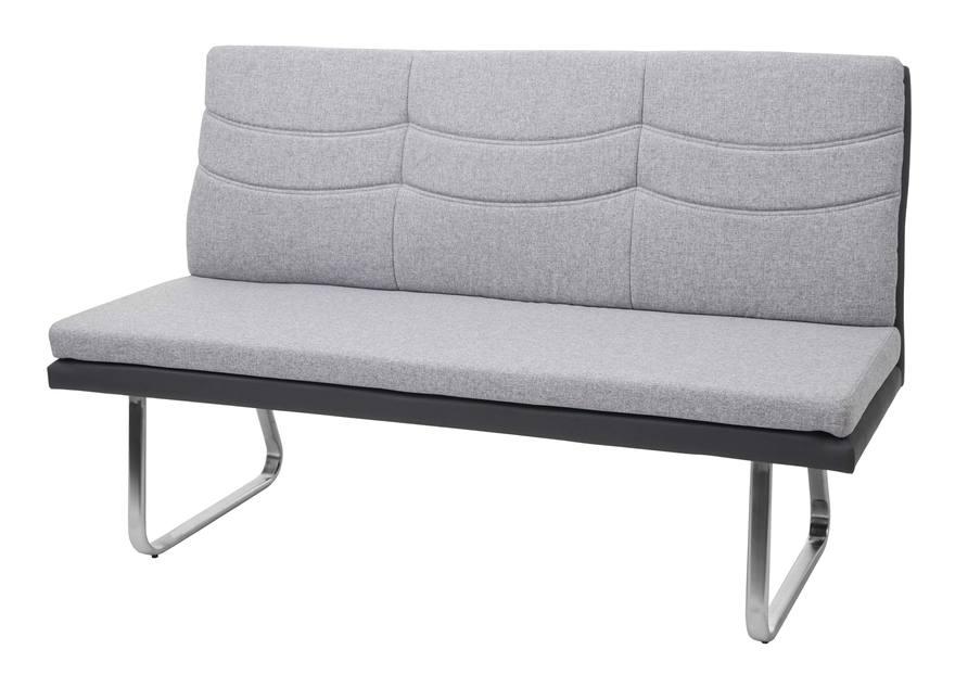 Panca panchina da interni HWC-G54 3 posti 180cm acciaio inox tessuto ecopelle grigio - MENDLER