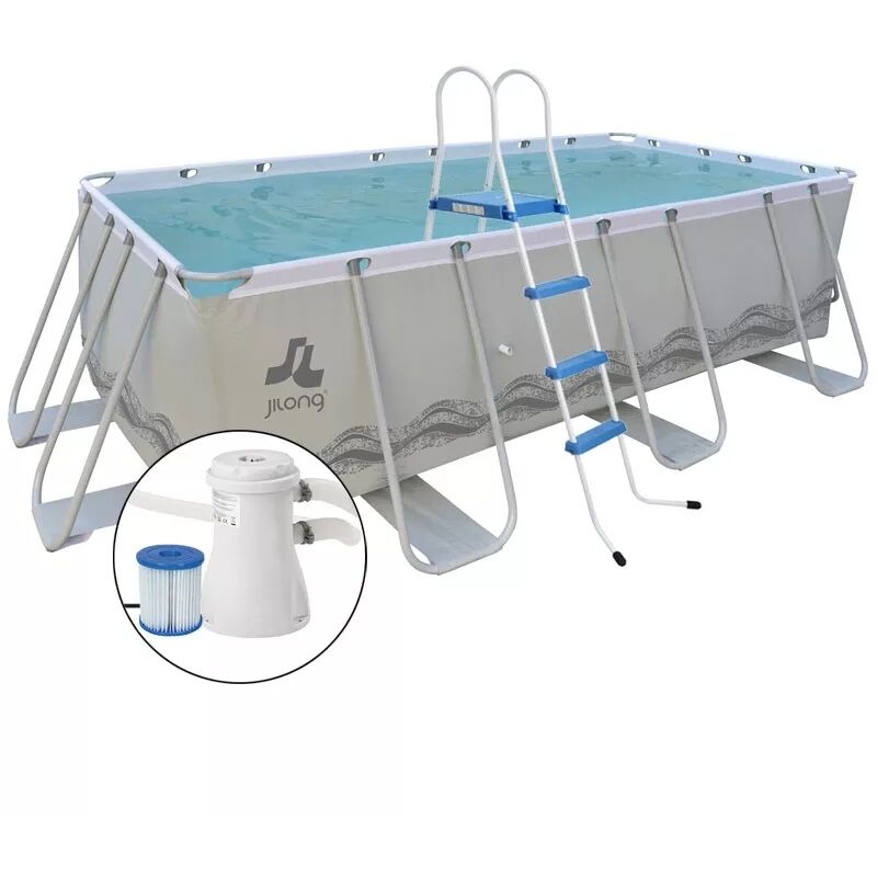 Piscina fuori terra rettangolare, per un relax assicurato Se sei alla ricerca di una piscina fuori terra resistente e di qualtà, sei nel posto giusto! Concediti adesso il tuo momento di relax personale, anche con il clima più torrido, con la piscina da esterno Jilong , una piscina fuori terra ampia e robusta. Infatti, con la sua struttura in acciaio antiruggine e liner in PVC laminato a 3 strati, la piscina da giardino ti regalerà un'estate sicura e senza pensieri. Con l'acquisto della piscina rettangolare 400 x 200 x 100 cm riceverai in omaggio una pompa filtro da 2006Lt-h, 2 cartucce, una scala di sicurezza, Dvd e kit per riparazioni. SPECIFICHE TECNICHE Piscina Fuori Terra rettangolare Dimensioni: 400 x 200 x 100 cm Struttura in acciaio antiruggine Liner in PVC laminato a 3 strati Accessori inclusi: pompa filtro da 2006Lt-h, 2 cartucce, scala di sicurezza, DVD e kit per riparazioni Colore: Grigio Capacità dell'acqua 90%: 1854GAL (7020L) Tempo di montaggio circa 45 minuti...Per saperne di più