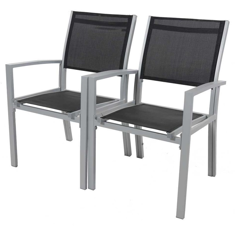 Set di 2 sedie da giardino TROPIC - Confort ideale - 57.5 x 62 x 90 cm - Colore struttura: Argentato - Colore textilene: Nero - Non impilabile Descrizione del prodotto Descrizione : Set di 2 sedie da giardino - Stile semplice e intramontabile - Struttira solida e leggera - Perfettamente compatibile con i nostri tavoli da giardino TROPIC - Sensibile ai raggi UV. Colore : Struttura: Argentata - Textilene: Nero. Materiale Struttura : Alluminio / Textilene. Materiale : Alluminio / Textilene. Dimensioni Dimensioni del prodotto : 57,5 x 62 x 90 cm - Altezza del sedile: 43 cm. Consigli pratici Carico massimo : 120 kg. Imballaggio : 1 collo: - 0,25 x 0,93 x 0,57 m, 8,5 kg. Consegna in strada (non si effettuano consegne al piano)....Per saperne di più
