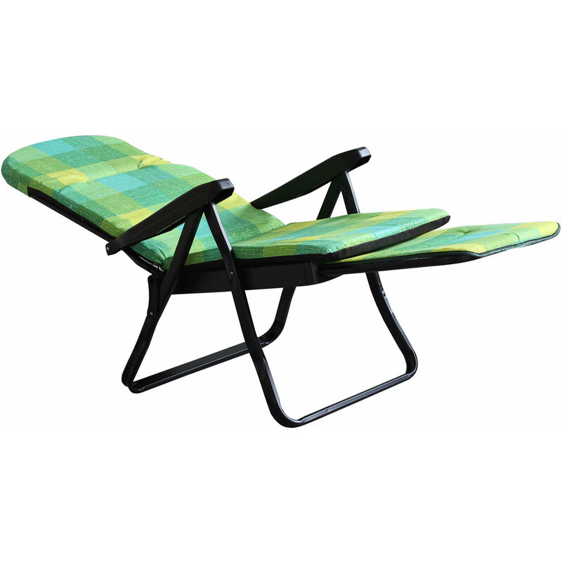 Poltrona con cuscino spesso 4 cm. Completa di carrello poggiapiedi a scomparsa tessuto 160 gr imbottito di poliuretano ad alta densità, possibilità di reclinare lo schienale in 6 posizioni differenti. Tubo ottagonale 35 x 20 cm Dimensioni aperta: 155 x 60 x 60...Per saperne di più