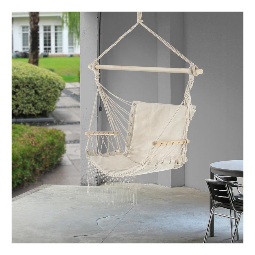 Poltrona Sospesa 120 x 100 x 65 cm Altalena Relax Poltrona Appendibile con Carico max. 150 kg Sedia Sospesa per Interno / Esterno - Color Crema