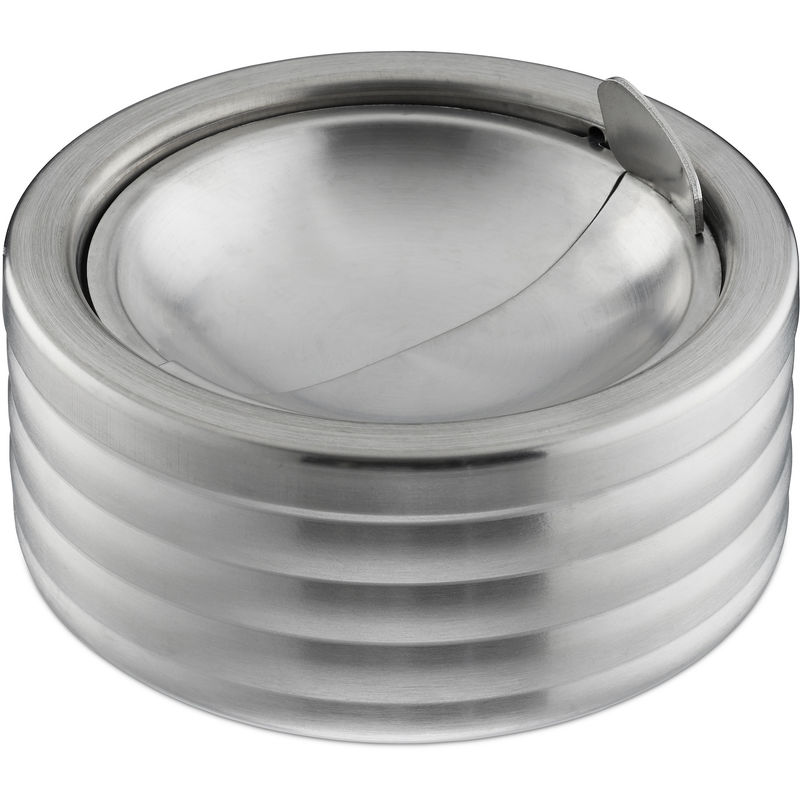 Posacenere Antivento, con Coperchio Ribaltabile, per Interni e Esterni, Acciaio Inox Antiruggine, HxD: 5,5X11,5, Argento - RELAXDAYS