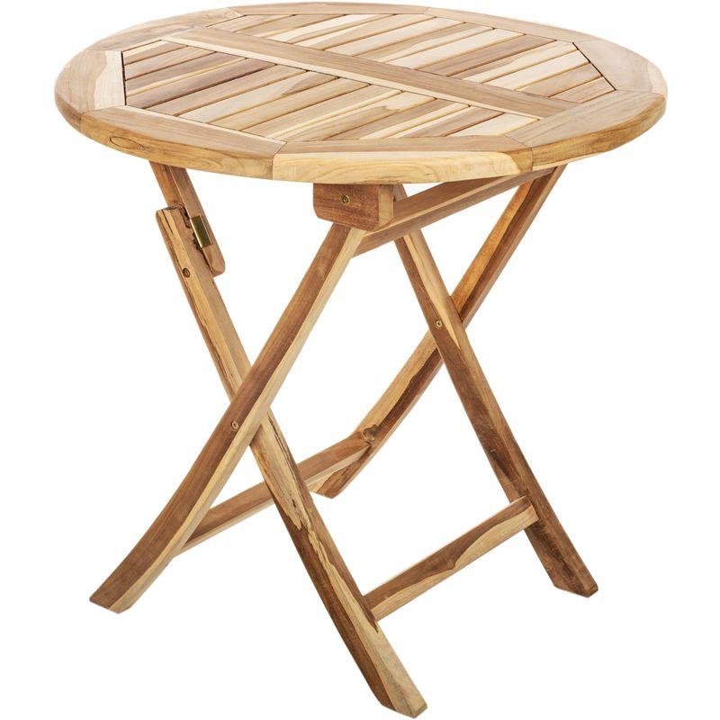 PrimeMatik - Tavolo da giardino rotondo pieghevole 80 cm in legno di teak certificato