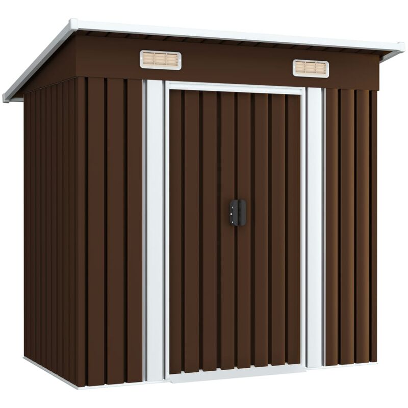 Questo capanno in metallo sarà perfetto per riporre una grande varietà di strumenti e attrezzi. Questo capanno è dotato di prese d'aria, garantendo un'eccellente ventilazione e riducendo l'accumulo di umidità e odori. Le doppie porte scorrevoli nella parte anteriore consentono di entrare e uscire facilmente. Grazie all'acciaio zincato resistente alla corrosione, il capanno per attrezzi è robusto, resistente e costruito per durare. Le parti pre-tagliate e pre-forate e il manuale delle istruzioni incluso assicurano un assemblaggio veloce e facile. Colore: Marrone Materiale: Acciaio zincato Dimensioni complessive (tetto incluso): 194 x 121 x 181 cm (L x P x A) Con 2 prese d'aria, ciascuna con una dimensione di 23x10 cm Dimensioni porta scorrevole: 80 x 154 cm (L x A) Superficie a terra: 183 x 112 cm (L x P) Con maniglia per la porta e protezioni angolari...Per saperne di più