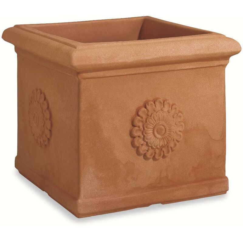 Vaso in resina quadrato cm. 40, decoratto con Rosetta. Misure parte alta: lato 40 cm. Misure parte bassa: lato 33 cm. Altezza: 37 cm. Volume: 37,5 lt. Il Quadro Resina con Rosetta è un elegante vaso quadrato in resina, decorato con una raffinata rosetta, ideale per aggiungere un tocco di classe ai tuoi spazi verdi o interni. Le sue dimensioni generose e il design tradizionale lo rendono perfetto per ambienti che richiedono stile e funzionalità. Questo Quadro Resina con Rosetta fa parte della Collezione "Terra" di Elbi, una serie di oltre 120 modelli di vasi classici che evocano l'eleganza delle terrecotte toscane. Grazie a tecniche innovative di produzione, questa collezione offre vasi in resina di alta qualità che mantengono intatte le sfumature artigianali delle terrecotte, garantendo estetica e durata nel tempo. I vantaggi dei vasi in resina Elbi includono: Leggerezza: fino al 90% più leggeri rispetto ai vasi in terracotta, facili da spostare. Resistenza: sopportano urti, sbalzi...Per saperne di più