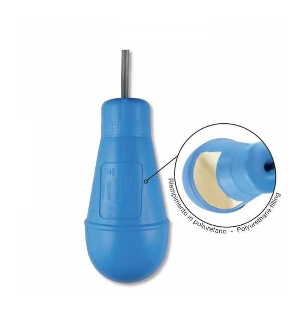 REGOLATORE DI LIVELLO PER ACQUE REFLUE SENZA MERCURIO Regolatore di livello sommerso (brevettato). Stagno fino a 100 m di profondità, insensibile all’umidità ed alla condensa. Costruito con contatti elettrici di nuova concezione costituiti da: • Commutatore 10 A 250 V a contatti autopulenti ad ogni manovra ed elevata distanza di apertura. IMPIEGO Regolazione di acque industriali particolarmente turbolente con residui di agglomerati in sospensione, o acque reflue . Il regolatore di livello tipo MERCURY/MC è costituito da: • Corpo esterno in Polietilene pressosoffiato in un unico pezzo . • Peso interno per lo spostamento del baricentro verso l’ingresso del cavo e per la determinazione del punto di rotazione. • Commutatore di comando elettrico 10A 250V c. a . a contatti autopulenti con elevata distanza di apertura. All’interno del regolatore viene effettuata un’iniezione di poliuretano a cellule chiuse e non igroscopiche. Tale iniezione elimina ogni particella d’aria e sigilla il tutto,...Per saperne di più