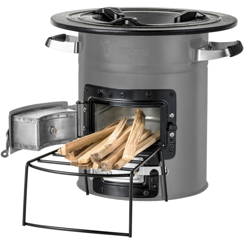 BBQ-Toro Rocket Stove RAKETE #2, grigio, Stufa a razzo La stufa a razzo può essere utilizzata con diversi materiali. Può essere alimentata con legna, carbone o biomassa combustibile (pellet di legno, foglie, cartone e molto altro). Fate il barbecue in modo ecologico e sostenibile! L'uso all'aperto non è un problema, anche in caso di vento. Grazie all'effetto camino (tiraggio dal basso), la legna viene bruciata in modo efficace. Le fiamme salgono attraverso un'apertura al centro della stufa fino all'anello in ghisa. Questo design unico presenta molti vantaggi. In primo luogo, consente una combustione completa dei materiali - è una fiamma quasi inodore, senza fumo e senza scintille - e in secondo luogo, il calore che fuoriesce può essere utilizzato per cucinare. La stufa a razzo ha due aperture con sportelli, da un lato per accendere il razzo e dall'altro per regolare l'afflusso di aria. La fornitura comprende una rastrelliera per la legna da ardere, con la quale è possibile...Per saperne di più
