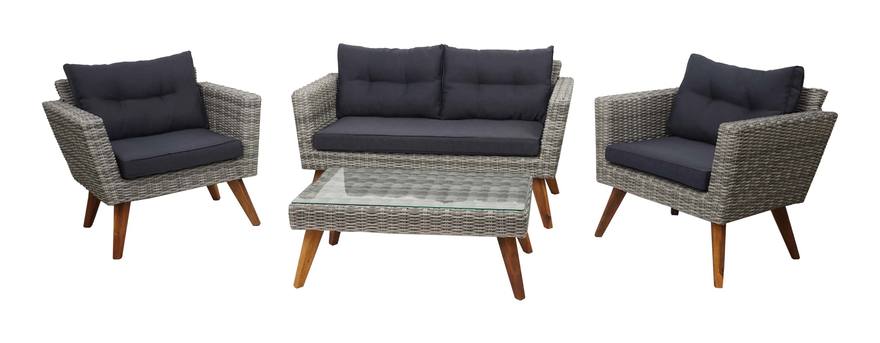 Salottino con tavolino da giardino modello HWC-E93 materiale polyrattan e legno di acacia colore GRIGIO con cuscini GRIGIO SCURO Questo salottino soddisfa gli standard più elevati della sua categoria. È stato realizzato con materiali di prima qualità garantendo elevata stabilità e longevità. Il materiale utilizzato per questi salottini sembra rattan tradizionale, ma presenta molti più vantaggi, come l'impermeabilità e la maggiore resistenza, inoltre risulta essere anche più facile da pulire! I vari componenti di questi salottini si inseriscono perfettamente in qualsiasi ambiente e possono essere disposti in svariate combinazioni trovare il vostro assetto ideale sarà facile e divertente! Durante i mesi invernali si consiglia di tenere al riparo il salottino o di coprirlo con appositi teli. Informazioni generali sul montaggio: Evitare di serrare immediatamente le viti durante il montaggio dei prodotti. C'è il rischio di deformare il telaio. Si consiglia di posizionare prima tutte le...Per saperne di più