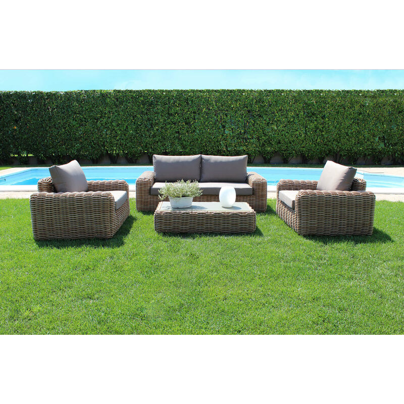 Salotto da esterno per portico e giardino in rattan naturale e 10 cuscini, cm 183 x 85 x 62 h - MILANI HOME - L'avis des Clients