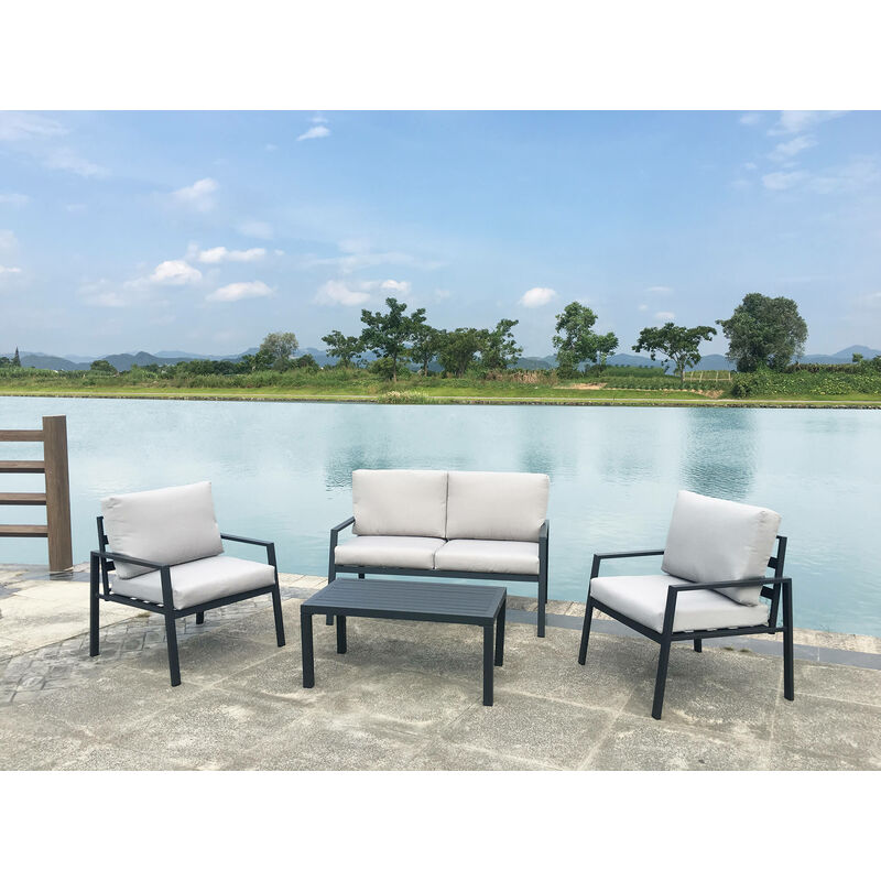 Salotto da Giardino in Alluminio con Cuscini in Poliestere e Tavolino Rettangolare in Color Antracite - MILANI HOME