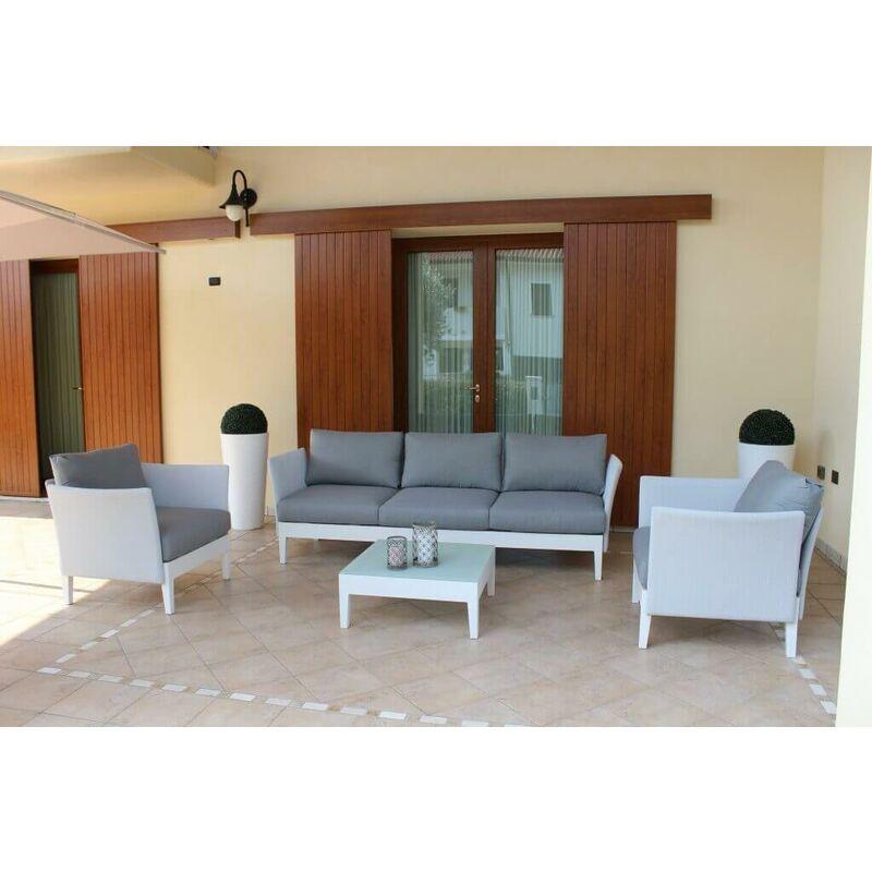 Salotto Da Giardino Set In Alluminio 3 Posti Bianco Da Esterno Portico Terrazzo - MILANI HOME