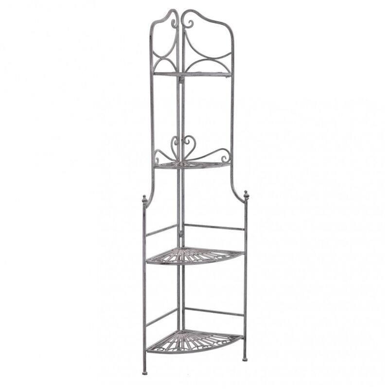 Scaffale Angolare in Metallo Antico 4 Ripiani Verniciato Bianco Portapiante